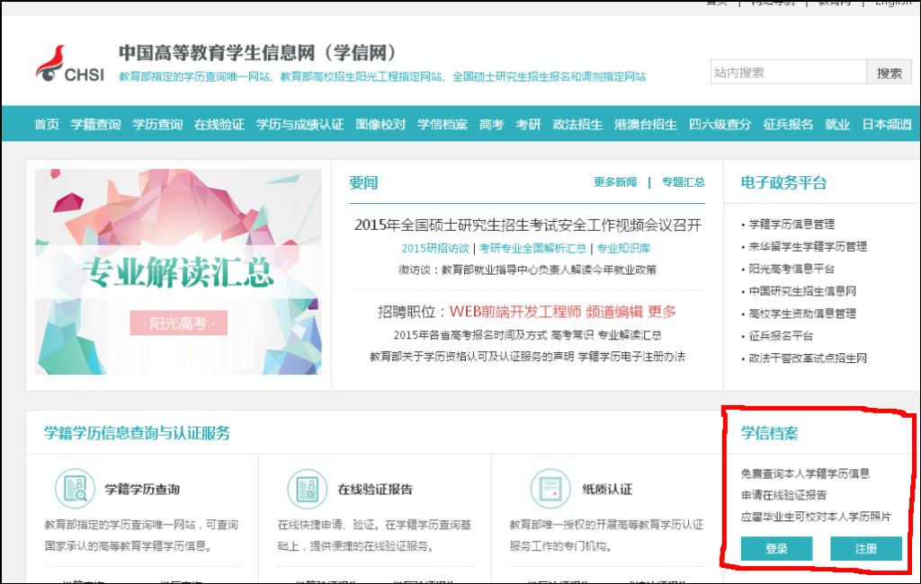 “学信档案”是中国高等教育学生信息网(简称“学信网”)各类学生个人信息档案的总称,涉及全国高等教育学生信息数据库中各类学生的学籍、学历、招生录取、助学贷款等信息。目前开通学籍、学历、图像校对审核服务,招生录取、助学贷款等服务将后期完善。学生本人通过实名注册,利用手机短信(免短信费)或邮箱获得注册校验码的方式,将自己的实际身份与数据库中的高考、学籍、学历等信息实现绑定,实现免费注册和免费查询所有的个人档案信息,并使自己拥有一份完整的学信电子档案。