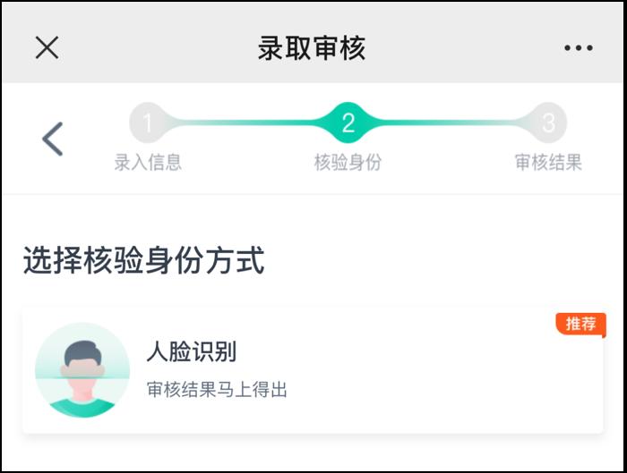 3. 核验身份方式选择“人脸识别”。