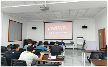 认定工作开展前我校继续教育与培训学院负责老师多次与陕西柴油机重工有限公司沟通联系并经现场考察,最终确定以异地上门的方式开展认定工作。这也是我校连续三年为陕西柴油机重工有限公司进行认定工作。为确保本次认定工作规范和质量,整个技能认定过程中严格遵循认定流程、遵守技能评价中心考试制度,考核过程严肃规范。