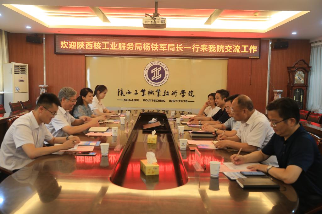 6月10日下午,陕西核工业服务局副局长杨铁军一行4人就职工教育培训和校企合作新模式相关工作来我院考察交流。党委书记惠朝阳会见杨铁军副局长一行。院长刘永亮、副院长刘清参加座谈交流并陪同考察。