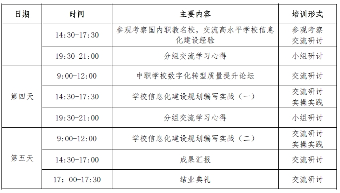 为深入贯彻习近平总书记关于教育的重要论述和党的二十大和二十届二中、三中全会精神,依据《教育强国建设规划纲要(2024-2035 年)》《中共中央国务院关于弘扬教育家精神加强新时代高素质专业化教师队伍建设的意见》《关于深化现代职业教育体系建设改革的意见》《教育部财政部关于实施职业院校教师素质提高计划(2021—2025 年)的通知》等文件要求,由全国重点建设职业教育师资培养培训基地(陕西工业职业技术学院)、国家级职业学校校长培训基地牵头,联合核心成员单位-山西华兴科软有限公司,拟开展教育数字化转型背景下中职学校管理团队领导力提升培训项目。现将有关事项通知如下: