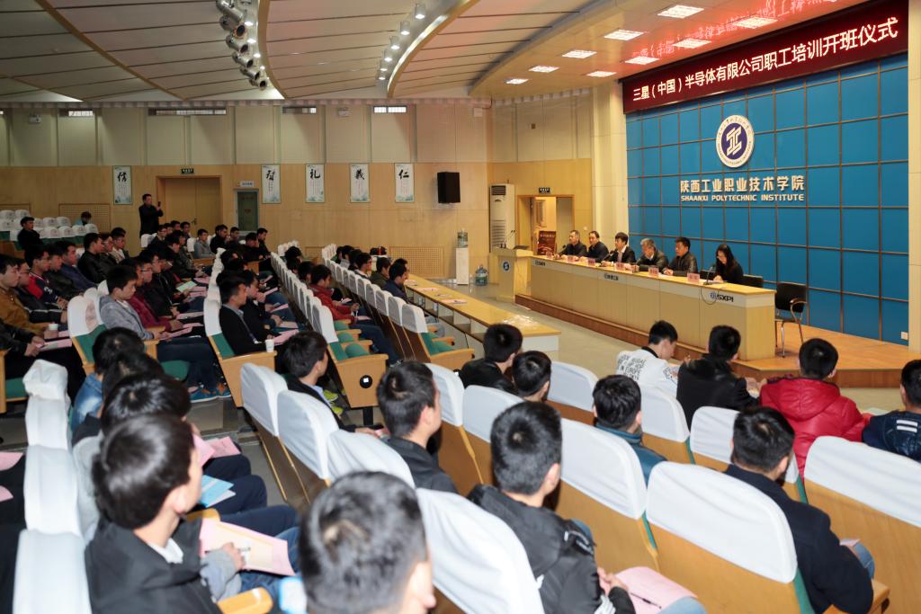 2017年2月20日上午,我院承办的三星(中国)半导体有限公司职工培训班开班仪式在我院学术会堂举行。我院继续教育中心主任韩伟,校企合作处处长卢文澈,电气工程学院副院长夏东盛、实训中心主任白洁,培训班132名学员及相关人员参加开班了仪式,仪式由继续教育中心副主任付胜利主持。