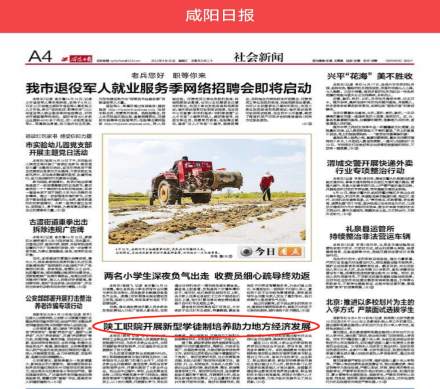 本报讯(路程 记者徐浩)去年以来,陕西工业职业技术学院深入实施国家职业技能提升行动,与我市多家企业合作,共同开展新型学徒制培养,为区域经济社会发展提供了有力支撑。