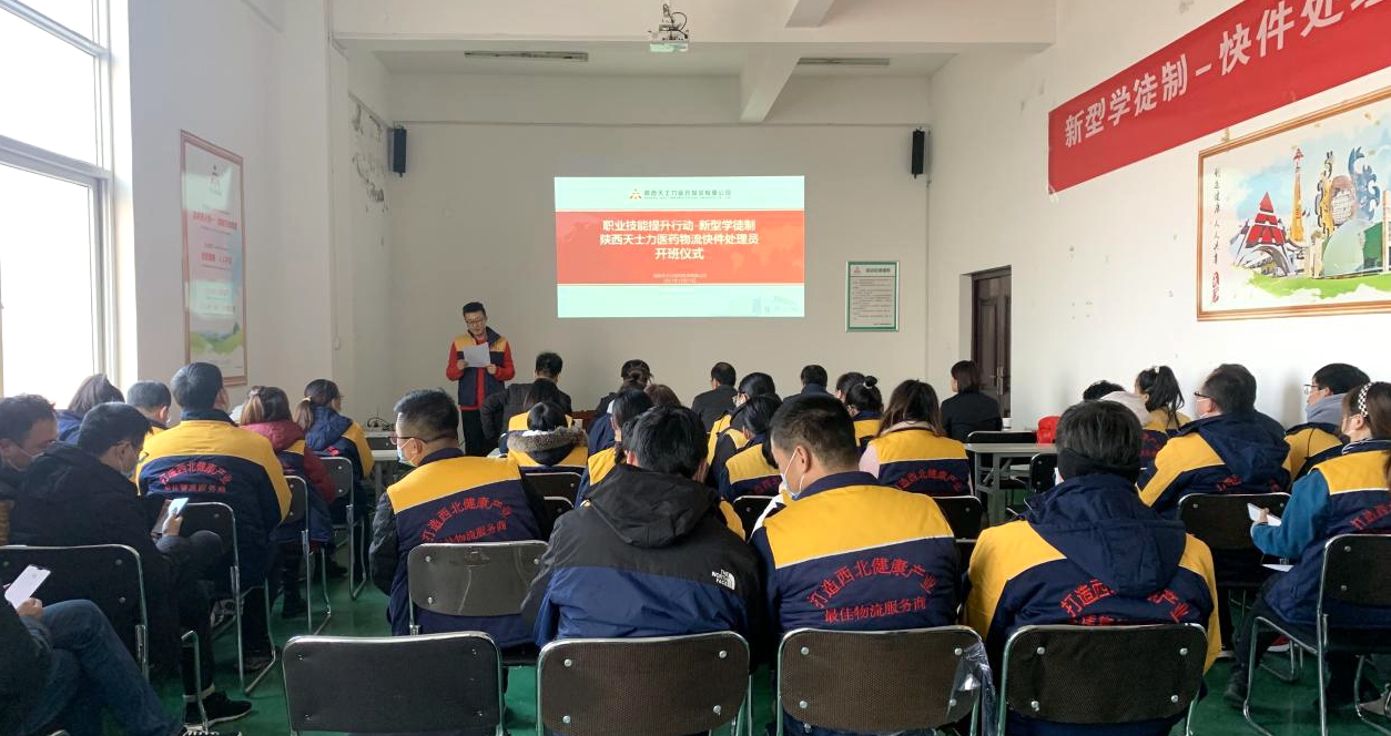 12月14日上午,“天士力快件处理员学徒制培训班”在陕西天士力医药物流有限公司隆重举行。秦都区人力资源和社会保障局就业科科长夏汉忠,陕西天士力医药物流有限公司政府事务部经理滑彬、人事行政部经理吴娜,我校继教学院、商贸与流通学院授课教师以及培训学员代表四十余人参加了典礼,典礼由滑彬主持。