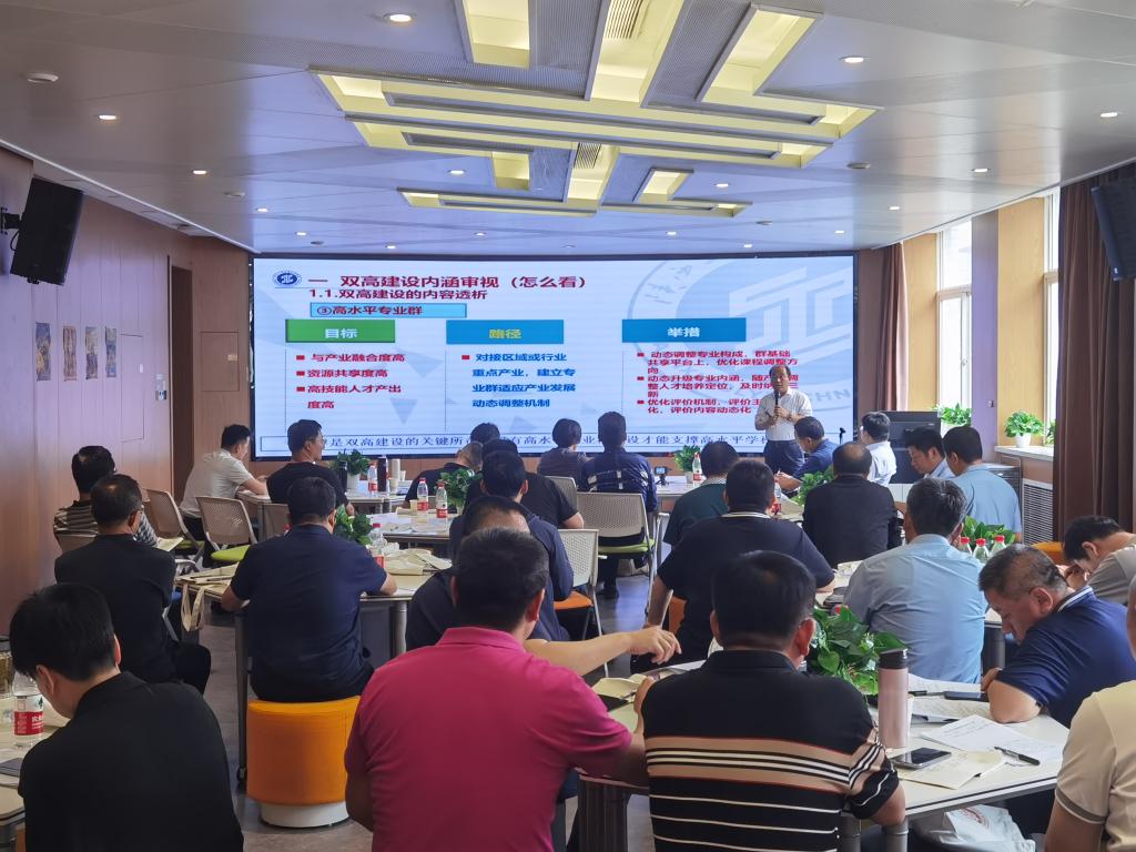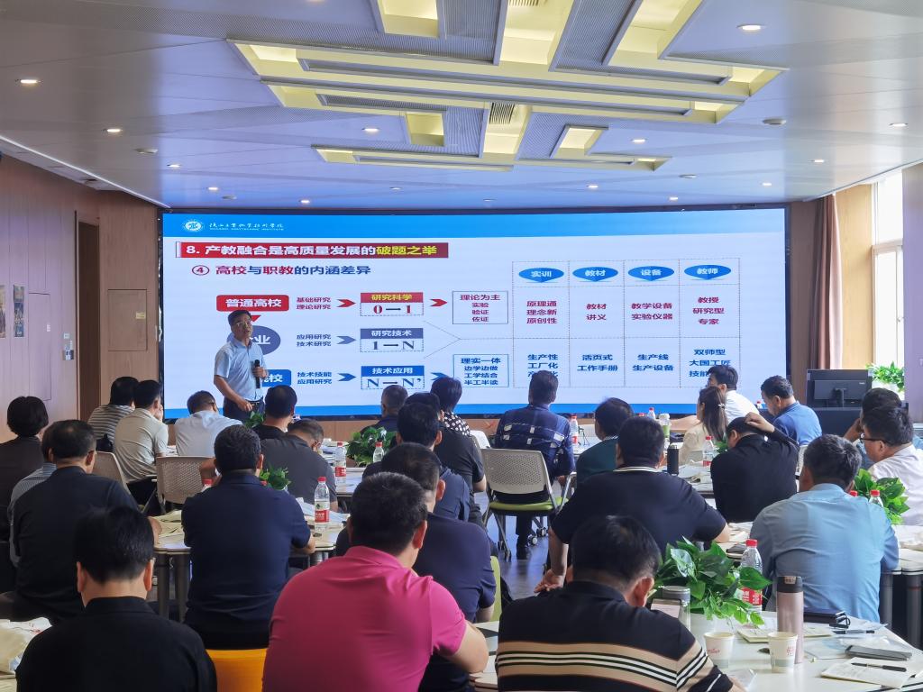 研修期间,刘永亮校长以《高质量视域下产教融合育人模式的思考与探索》为题,从“高质量发展是时代之需”“产教融合是路径选择”“一校一策是最优方案”三个方面深入解析了产教融合的关键意义和实施路径。梅创社副校长则以《突显引领,强化支撑,服务贡献,双高建设的探索与实践》为题,从“双高”建设的内涵审视、实施内容、绩效评价等方面分享了学校经验和做法。其他专家也从不同角度为培训学员讲授了精彩的课程内容。