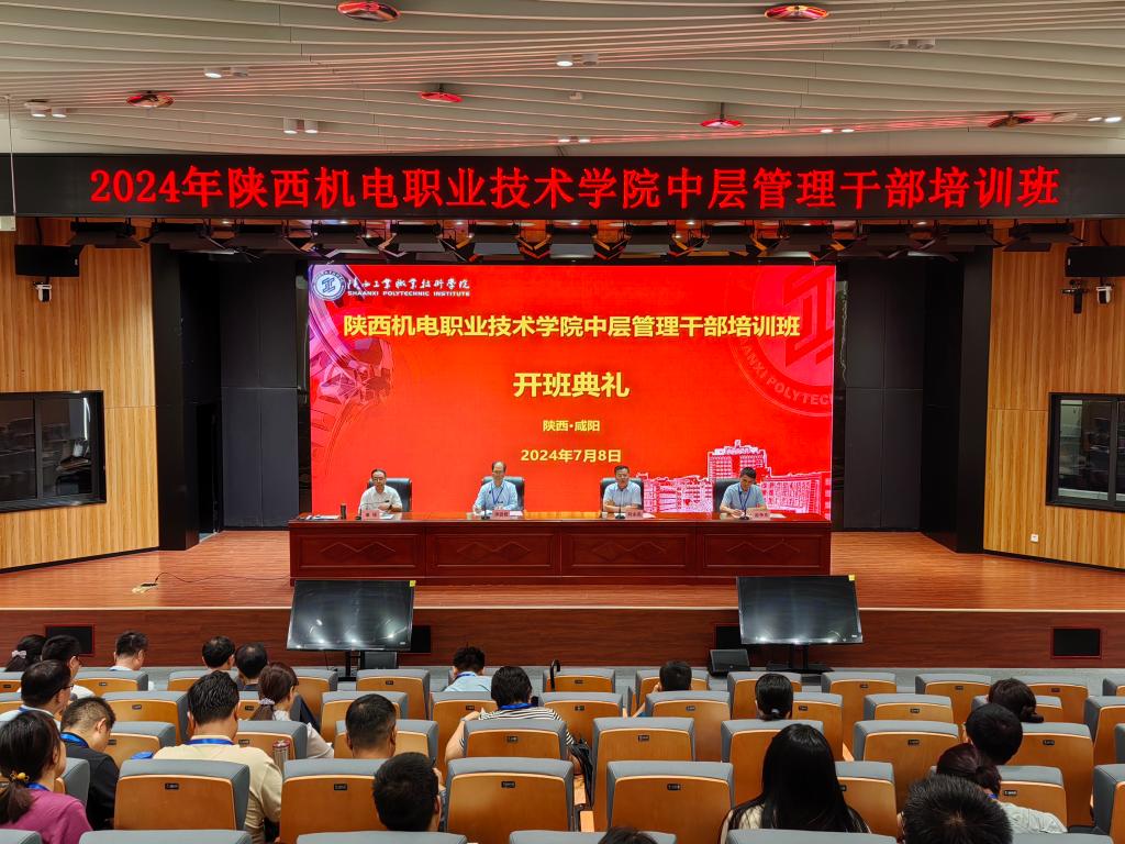 7月8日,由我校承办的2024年陕西机电职业技术学院中层管理干部培训开班典礼在我校经开校区启新楼报告厅举行。陕西机电职业技术学院党委书记伊逊智,党委委员、院长助理、组织部长赵争东,我校党委副书记、校长刘永亮,党委副书记、纪委书记康强,以及培训教师、管理人员、全体参训学员80余人参加了开班典礼。典礼由康强主持。