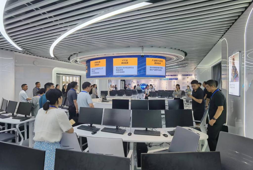 开班典礼前,伊逊智书记及全体培训学员实地参观了我校图文信息中心和华为产业学院。