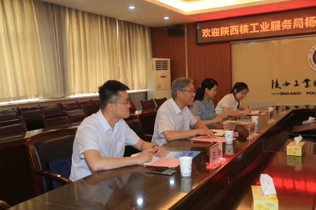 6月10日下午,陕西核工业服务局副局长杨铁军一行4人就职工教育培训和校企合作新模式相关工作来我院考察交流。党委书记惠朝阳会见杨铁军副局长一行。院长刘永亮、副院长刘清参加座谈交流并陪同考察。