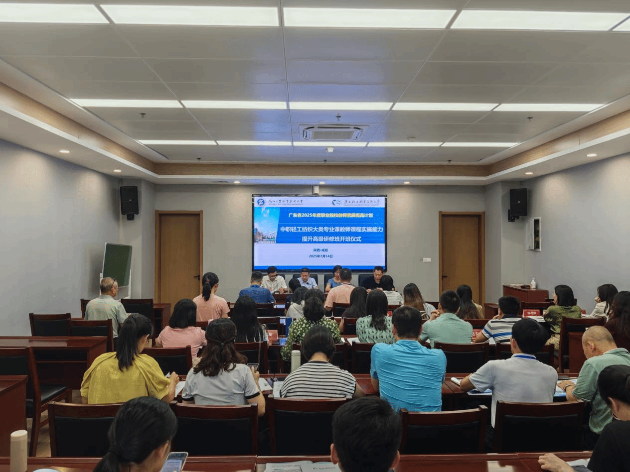 7月14日上午,广东省2025年中职轻工纺织大类专业课教师课程实施能力提升高级研修班在我校经开校区顺利开班。此次培训项目是由广东轻工职业技术大学与我校联合承办,7月6日至12日在广东轻工职业技术大学实施第一阶段,7月14日至20日在我校实施第二阶段。广东轻工职业技术大学材料材料学院副院长云娜,我校继续教育与培训学院院长闫军、副院长贾严鹏、财经与旅游学院院长何奇彦以及全体参训学员40人参加开班仪式,仪式由贾严鹏主持。